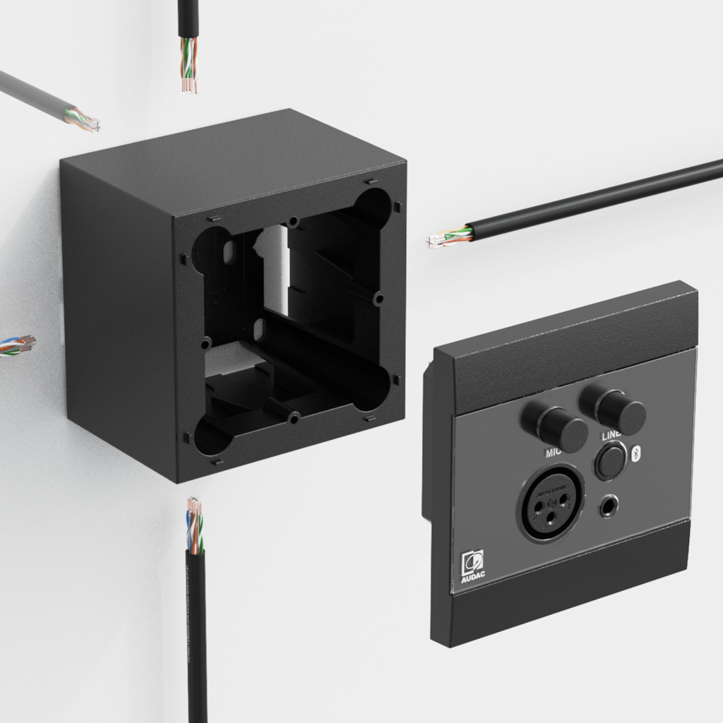 Die Wanddosen WB200 ermöglichen die Aufputzmontage für die 80 x 80 mm großen Wandpaneele der Serien WP2xx und NWP.