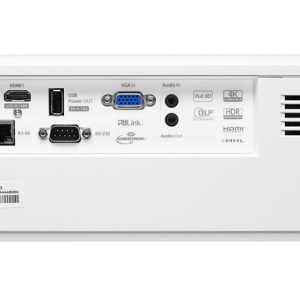 Dieser funktionsreiche Projektor hat einen eingebauten Lautsprecher und bietet eine wartungsfreie Laserlichtquelle von bis zu 30.000 Stunden. Für die ultimative Kontrolle verfügt der Projektor über einen RJ45-Anschluss, mit dem Sie Ihr Netzwerk in mehreren Räumen überwachen und steuern können.