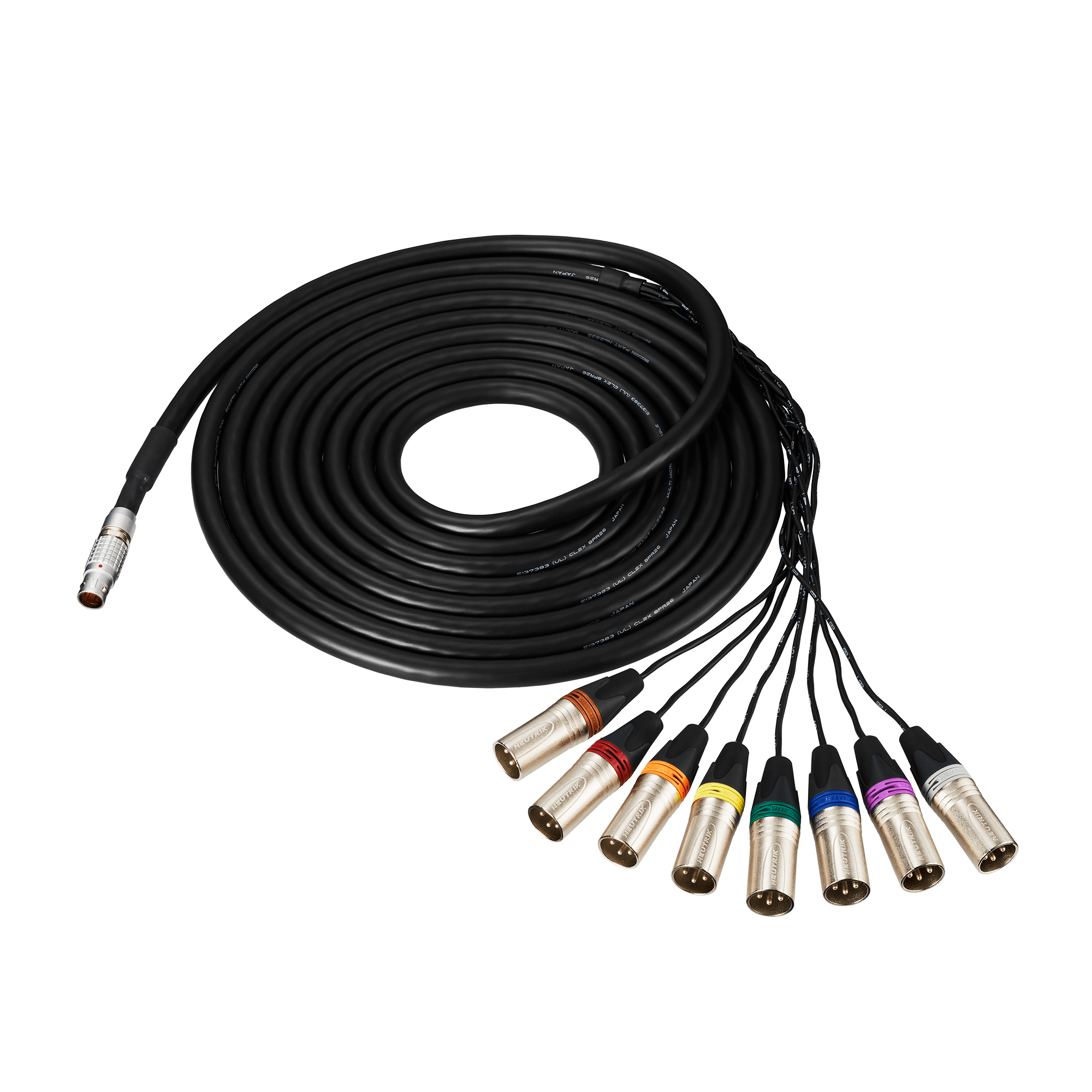 Am Ende des praktischen Griffbereichs des BP3600 befindet sich ein 16-poliger LEMO-Steckverbinder, an den das mitgelieferte, 5 m lange Breakout-Kabel (LEMO auf 8 x XLRM) angeschlossen wird, über das die acht Kanalsignale dann auf ein Mischpult oder Audio-Interface geroutet werden können. Sollte die erforderliche Kabelstrecke länger sein, sind als Zubehör außerdem verschiedene LEMO-LEMO-Verlängerungskabel erhältlich, die zwischen Mikrofon und Breakout-Kabel eingefügt werden können. Bei abgehängter Montage im Zuschauerbereich von Tribünen, Stadien oder Hallen sorgt ein Sicherungsring für die erforderliche zusätzliche Sicherheit.