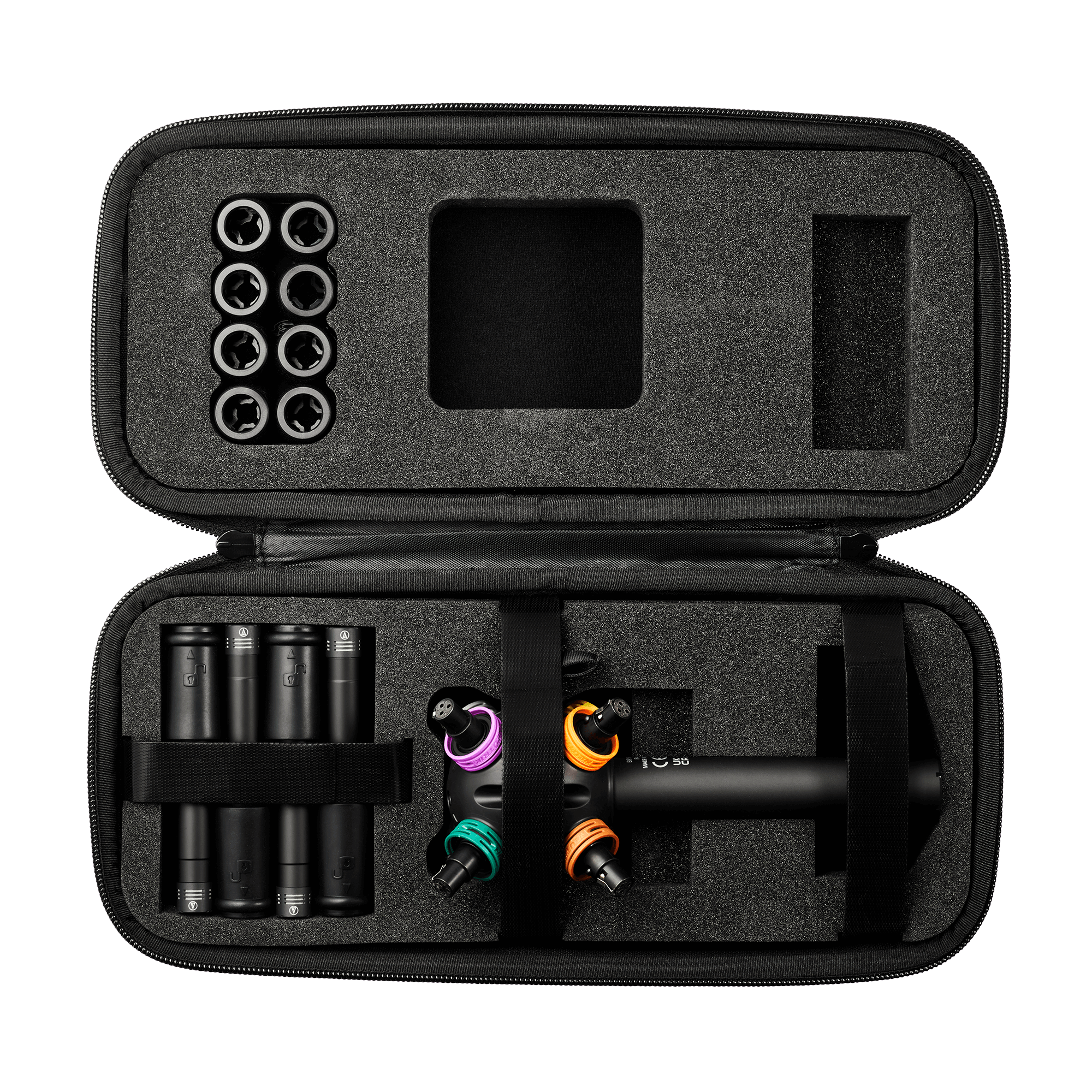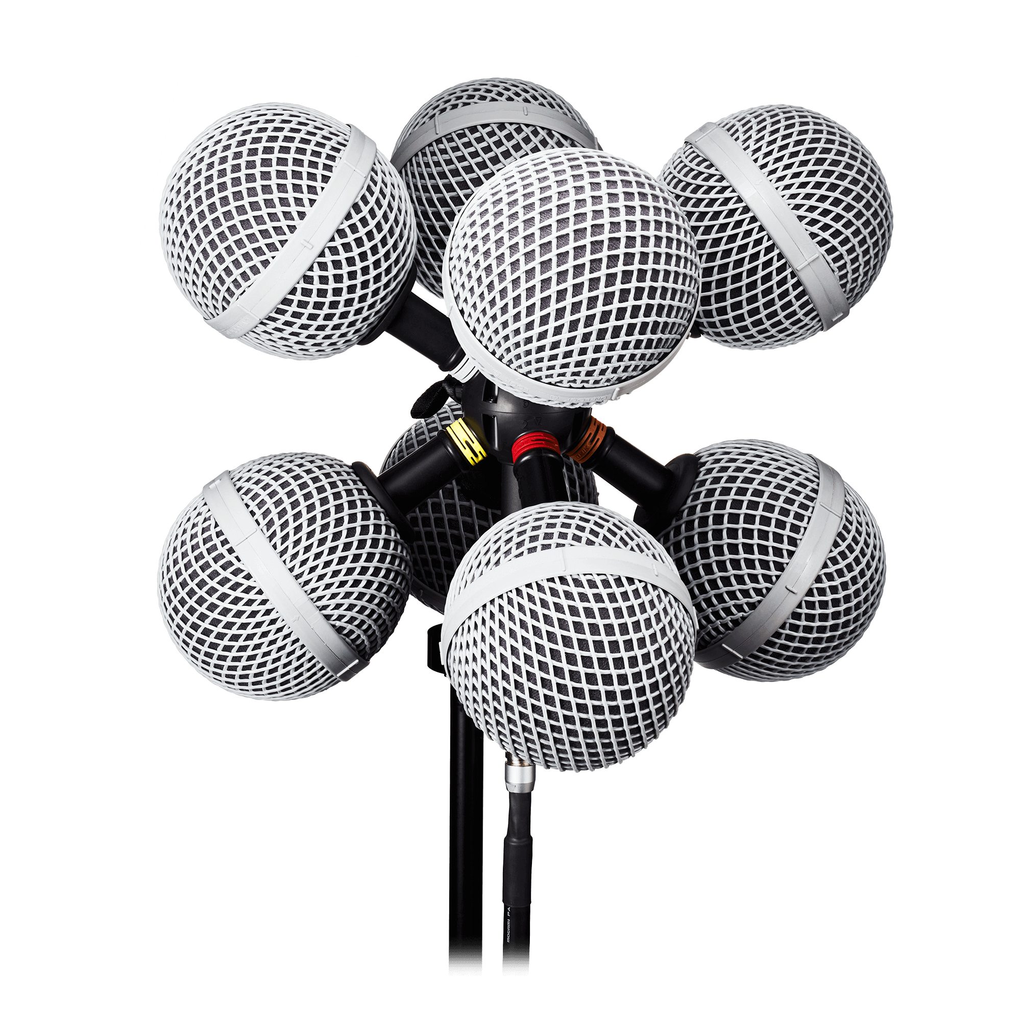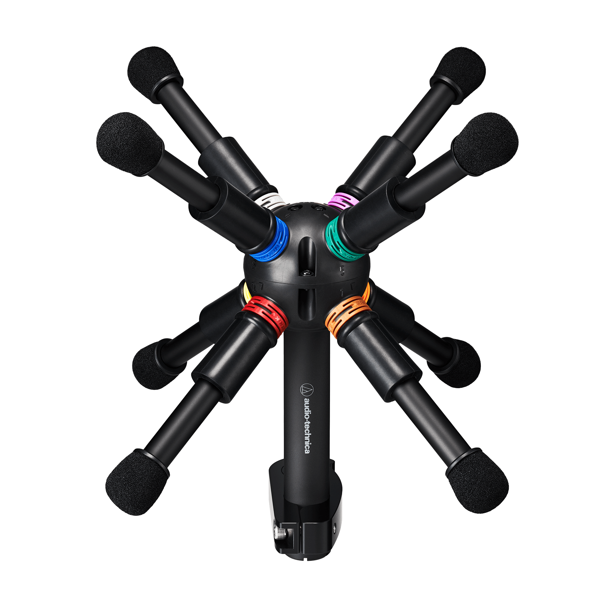 Farbkodierte, nummerierte Ringe für schnelle Kanalzuordnung der acht Mikrofone