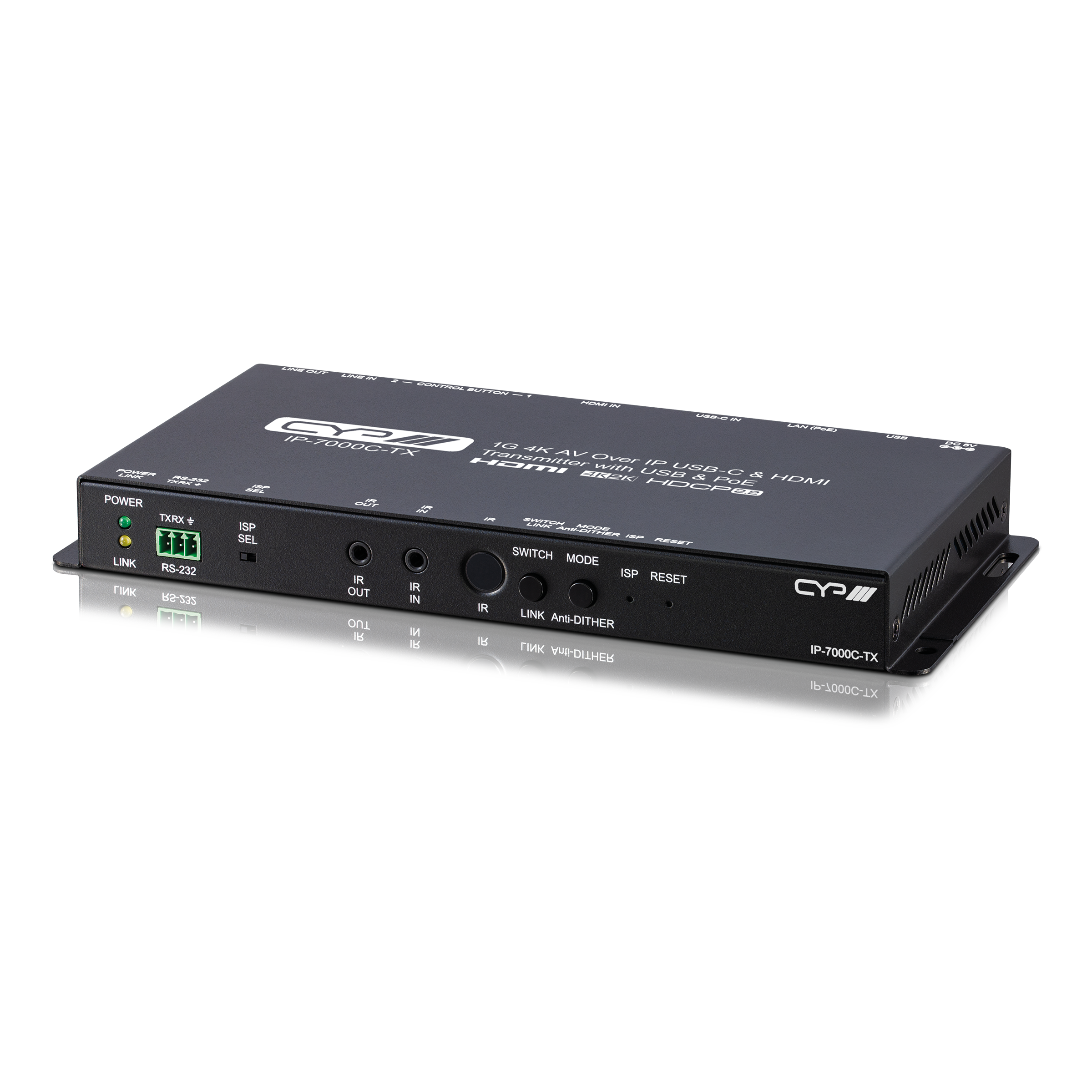 Der IP-7000C-TX ist der neueste 1G AV-over-IP-Sender und erweitert die branchenübliche Konnektivität für HDMI, RS232, IR, analoge Audio- und USB-Eingänge um einen USB-C-Eingang.