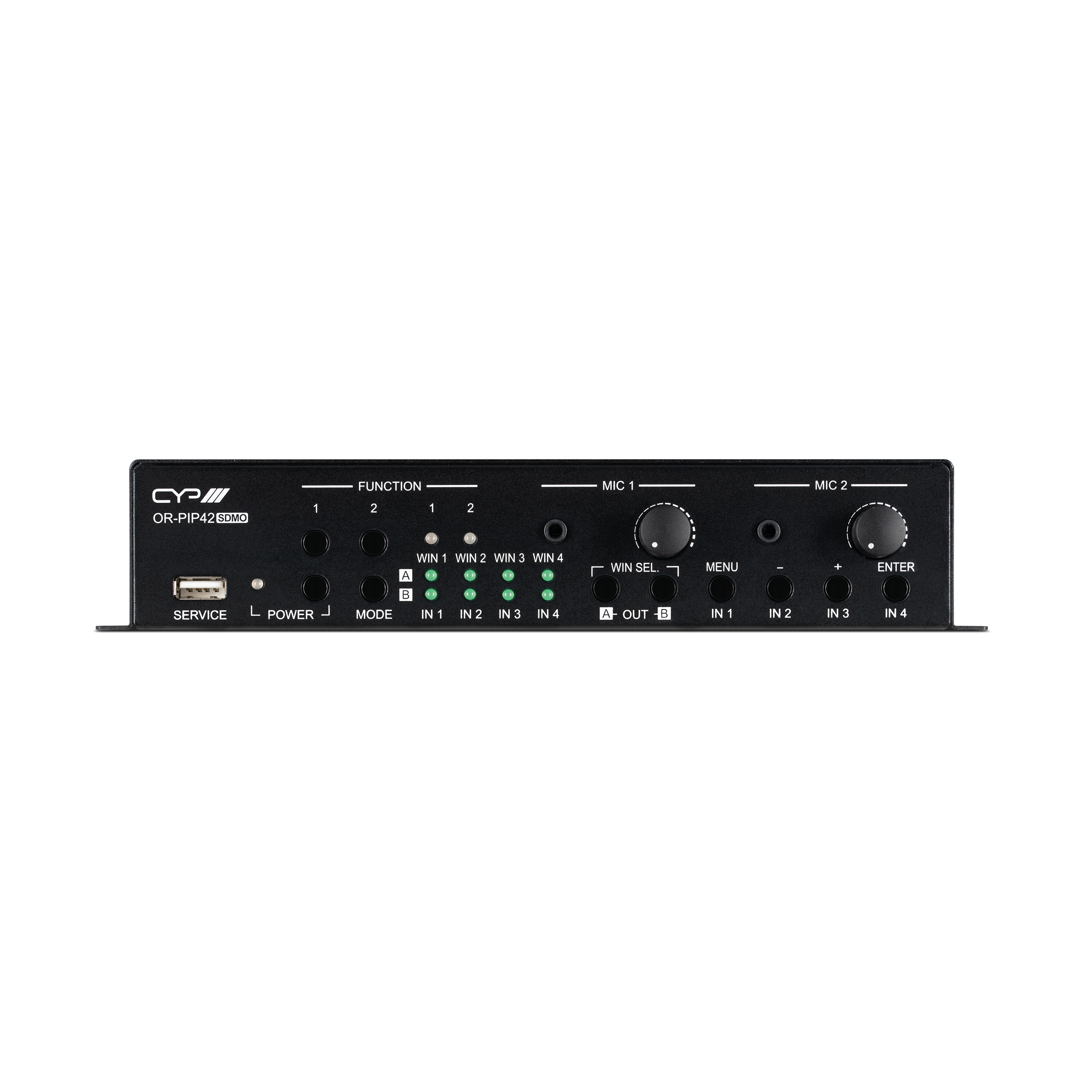 Die OR-PIP42SDMO ist eine 4 x 2 HDMI-Matrix mit Multiview-Funktionen, vielen Multiview-Anordnungen und einem CYP SDM-Ausgangsmodul-Steckplatz. Durch das Hinzufügen verschiedener SDM-Ausgangsmodule lässt sich die OR-PIP42SDMO vielseitig einsetzen.