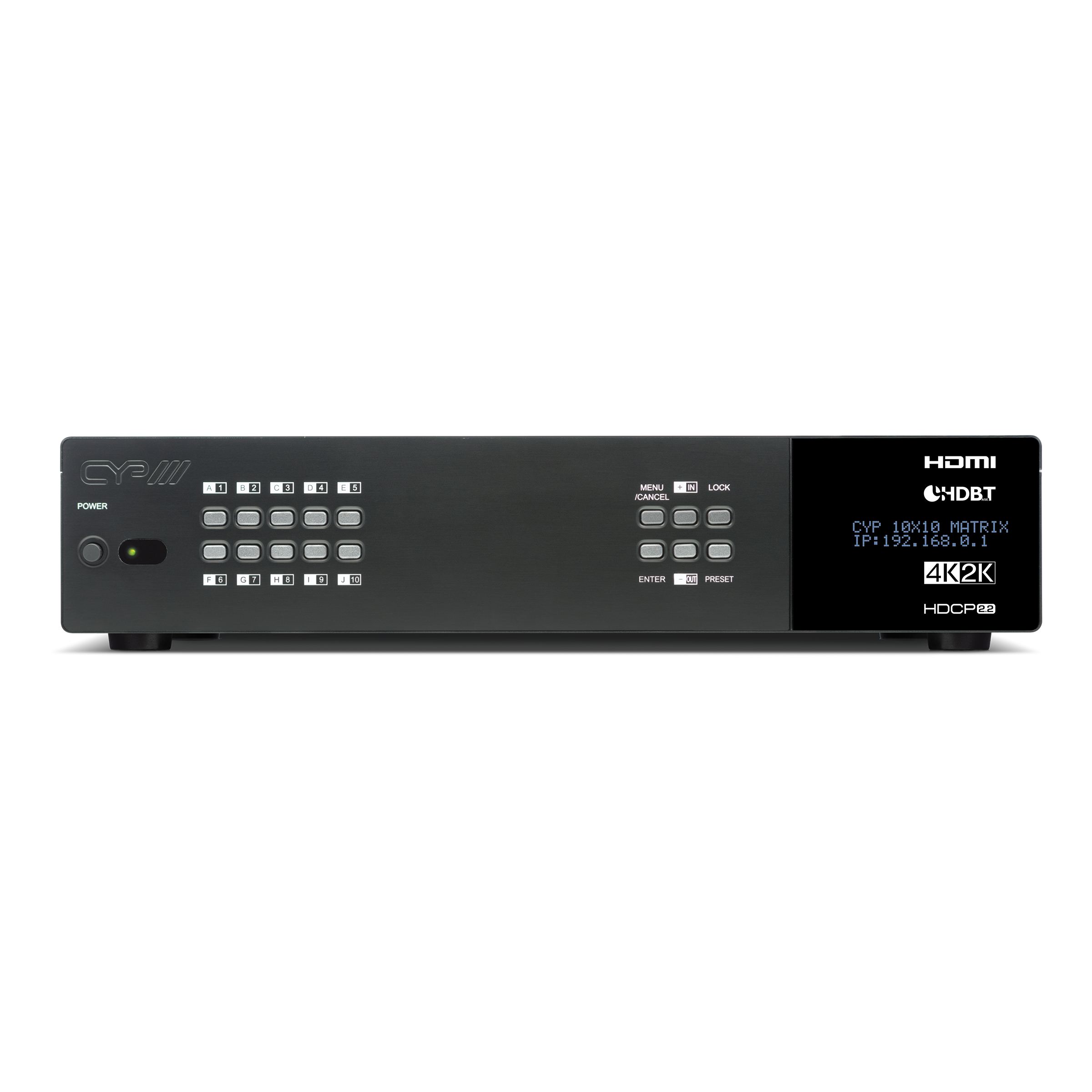 Diese überarbeitete Version unserer beliebten 10×10-Matrix bietet jetzt automatische 6G-Eingangskonvertierung, Pre-Gain-Lautstärkeregelung an allen Audioeingängen, einfache Automatisierung per CEC-Senden und einen erweiterten Mustergenerator.