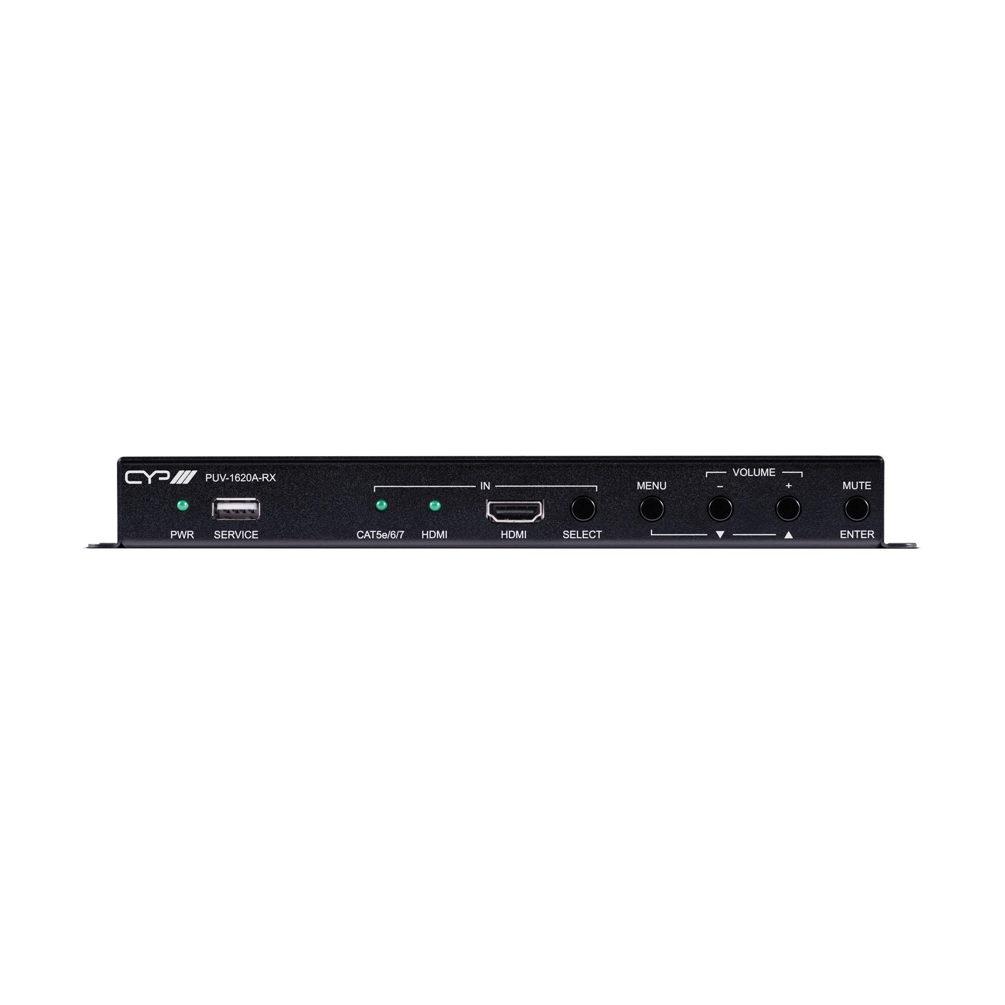 Der PUV-1620A-RX HDMI-über-HDBaseT-Receiver mit Verstärker ist ein 2×1-Switch mit Standard-HDMI- und HDBaseT-Eingängen, einem HDMI-Ausgang sowie einem verstärkten Stereo-Audioausgang. Der HDBaseT-Eingang dieses Geräts empfängt unkomprimiertes hochauflösendes 4K-UHD-Video (bis zu 10,2 Gbit/s) und ermöglicht die Steuerung über Ethernet, RS-232 und IR über ein einziges Kabel bis zu einer Entfernung von 100 Metern. Der HDMI-Eingang unterstützt 4K-UHD+-Quellen mit hoher Bandbreite (bis zu 18 Gbit/s) und 10/12-Bit-HDR. Die Durchleitung mehrerer digitaler Audioformate wie LPCM (bis zu 8 Kanäle), Bitstream und HD-Bitstream wird ebenfalls über die HDBaseT- und HDMI-Eingänge unterstützt. Zusätzlich ermöglichen die integrierten 3,5-mm-Miniklinken- und Class-D-Stereo-Verstärkerausgänge die Audioextraktion aus der ausgewählten Quelle (nur LPCM 2.0-Quellen) zur lokalen Beschallung – ideal für kleine Besprechungsräume, Klassenzimmer oder Hörsäle. Signalmanagementfunktionen wie automatisches Umschalten basierend auf dem Eingangssignal und Hot-Plug-Erkennung ermöglichen eine komfortable Freisprechfunktion. Vier integrierte Schaltrelaisanschlüsse ermöglichen die Steuerung von Geräten mit direkter Stromversorgung wie Projektionsleinwänden, Vorhängen, Leuchten usw. Über die Bedienelemente an der Vorderseite und eine umfassende Web-Benutzeroberfläche können Sie die Eingangssignale manuell auswählen, die Lautstärke regeln und weitere Funktionen wie EDID- und HDCP-Management sowie die Steuerung der vier Relaisanschlüsse nutzen.