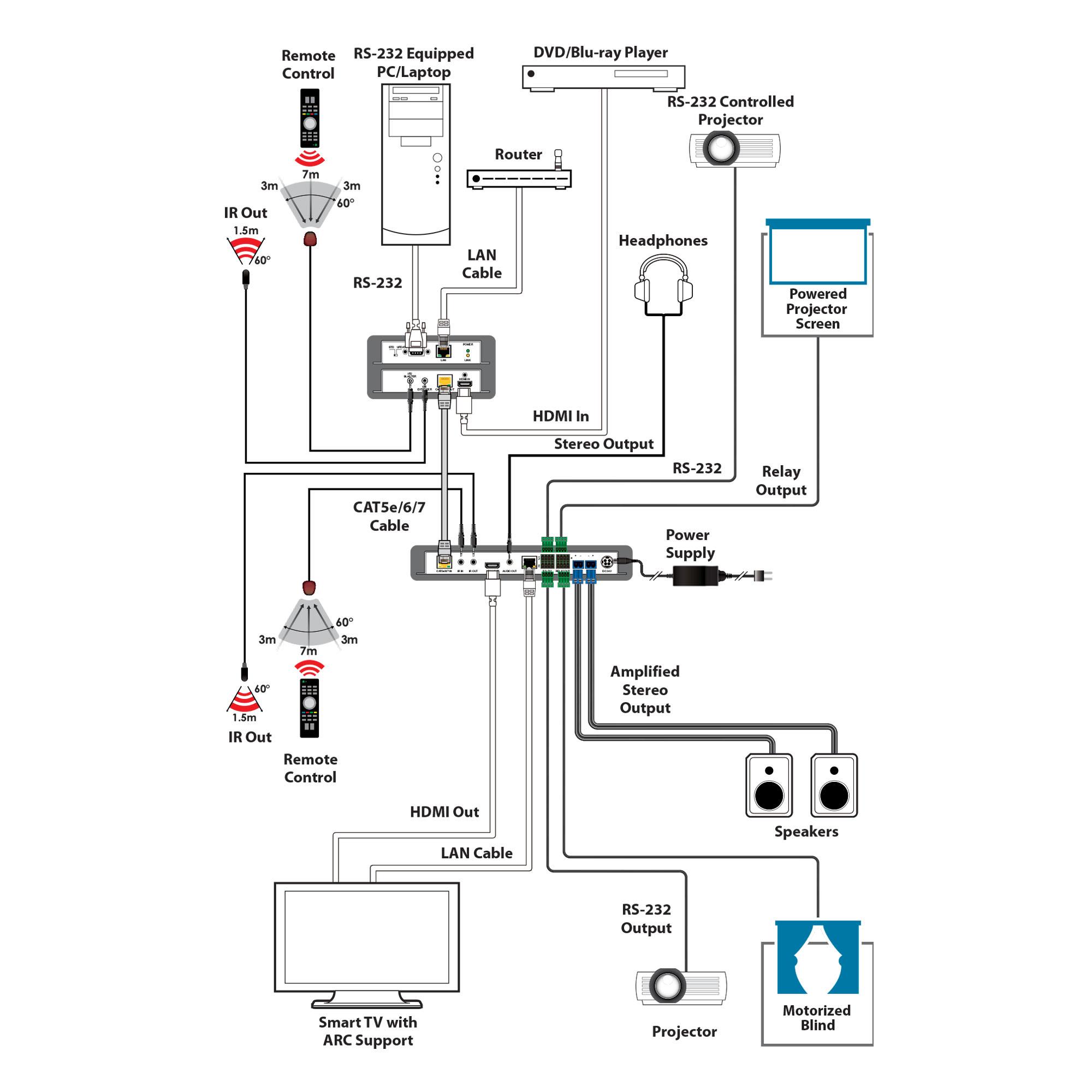 Dieser Schaltempfänger eignet sich ideal für private oder gewerbliche Punkt-zu-Punkt-Anwendungen mit langen HDBaseT-Signalübertragungsstrecken, wie z. B. Heimkinos, Konferenzräume, Besprechungsräume oder Hörsäle. Die integrierte PoH-Funktion (Power over HDBaseT) versorgt kompatible Sender mit Strom und sorgt so für mehr Flexibilität bei der Installation. Das Gerät lässt sich auf vielfältige Weise steuern, z. B. über Tasten an der Vorderseite, Web-GUI, Telnet und RS-232.