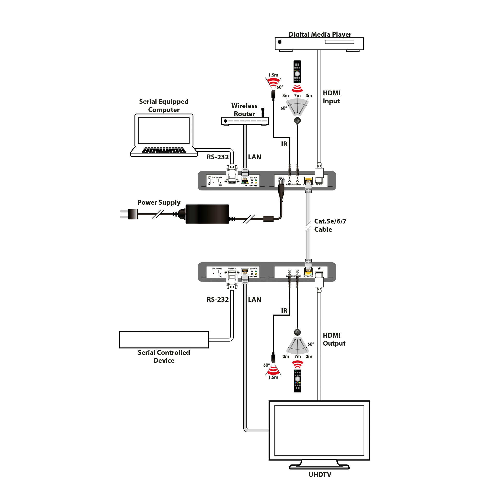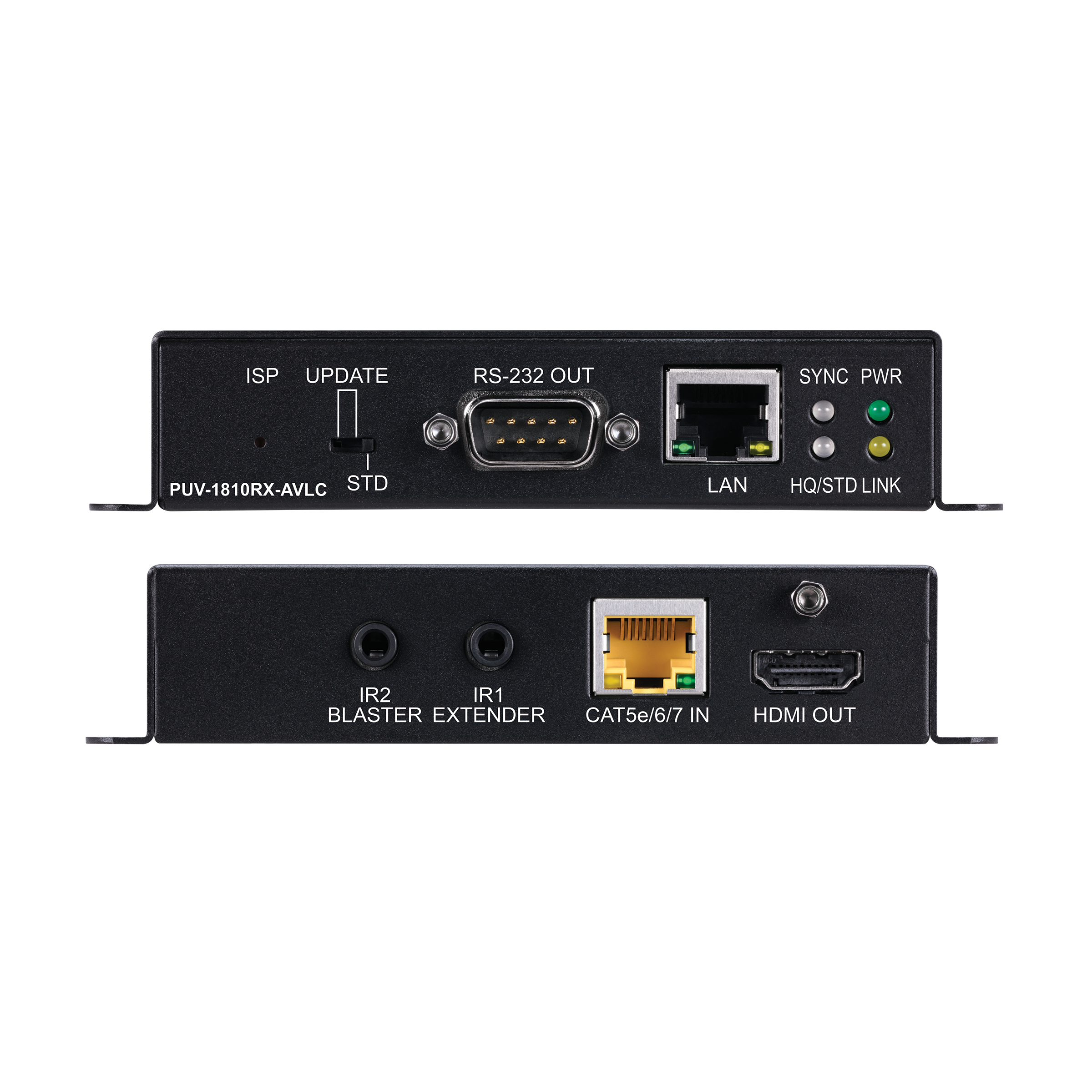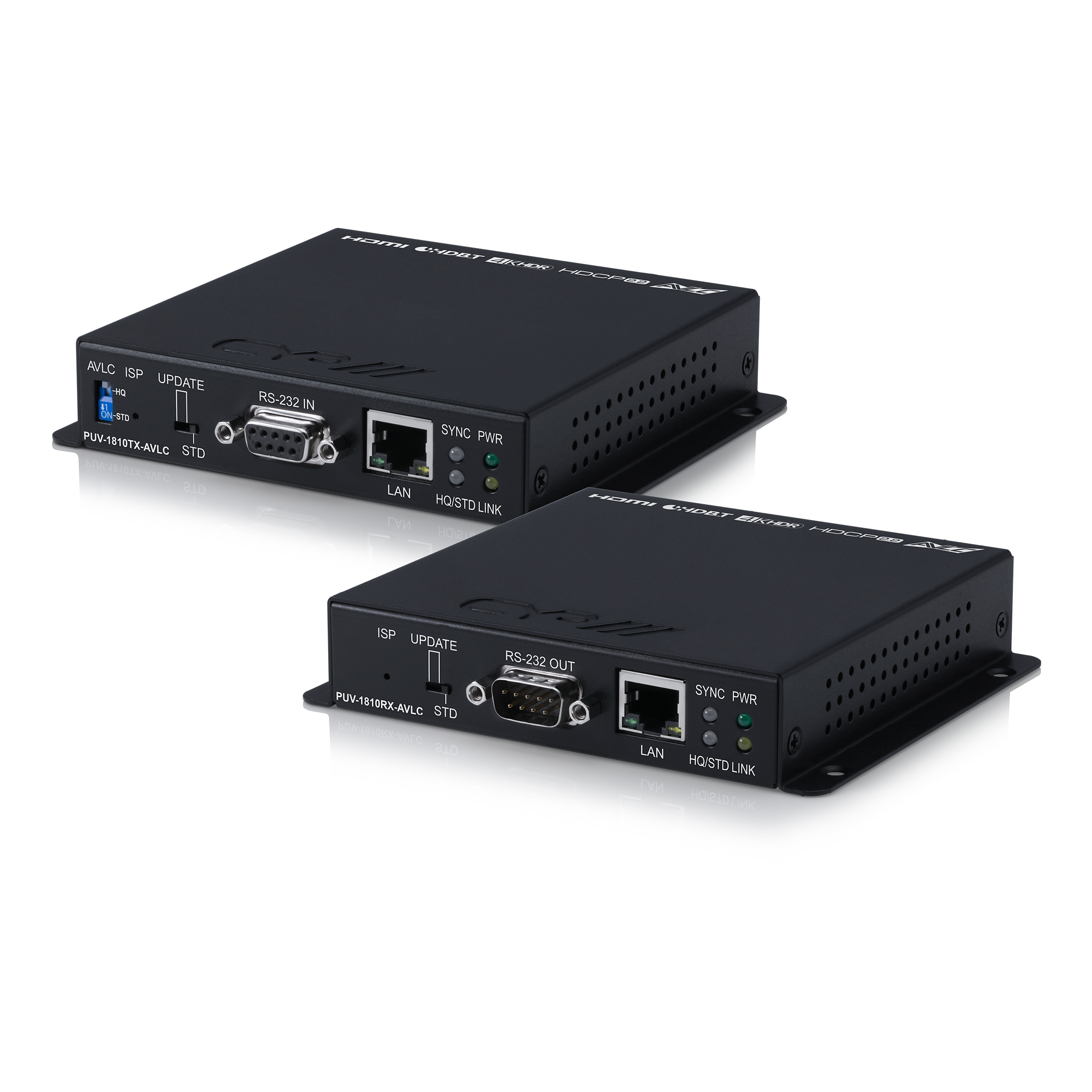 Das PUV-1810TX-AVLC Sender- und Empfänger-Kit ermöglicht die Übertragung von Videoauflösungen bis zu 4K UHD, einschließlich 10/12-Bit HDR und Dolby Vision, zusammen mit HD-Audio, 2-Wege-IR, RS-232, PoH (Power over HDBaseT) und LAN-Signalen über eine Entfernung von bis zu 70 m (4K 60 4:4:4) bzw. 100 m (4K 60 4:2:0). Diese Lösung bietet fortschrittliches Signalmanagement und gewährleistet zuverlässige Ergebnisse auch in anspruchsvollsten Installationsumgebungen. Audio, Video, Steuerung und Strom werden gleichzeitig über ein einziges CAT6a/7-Kabel bis zu 100 m übertragen.