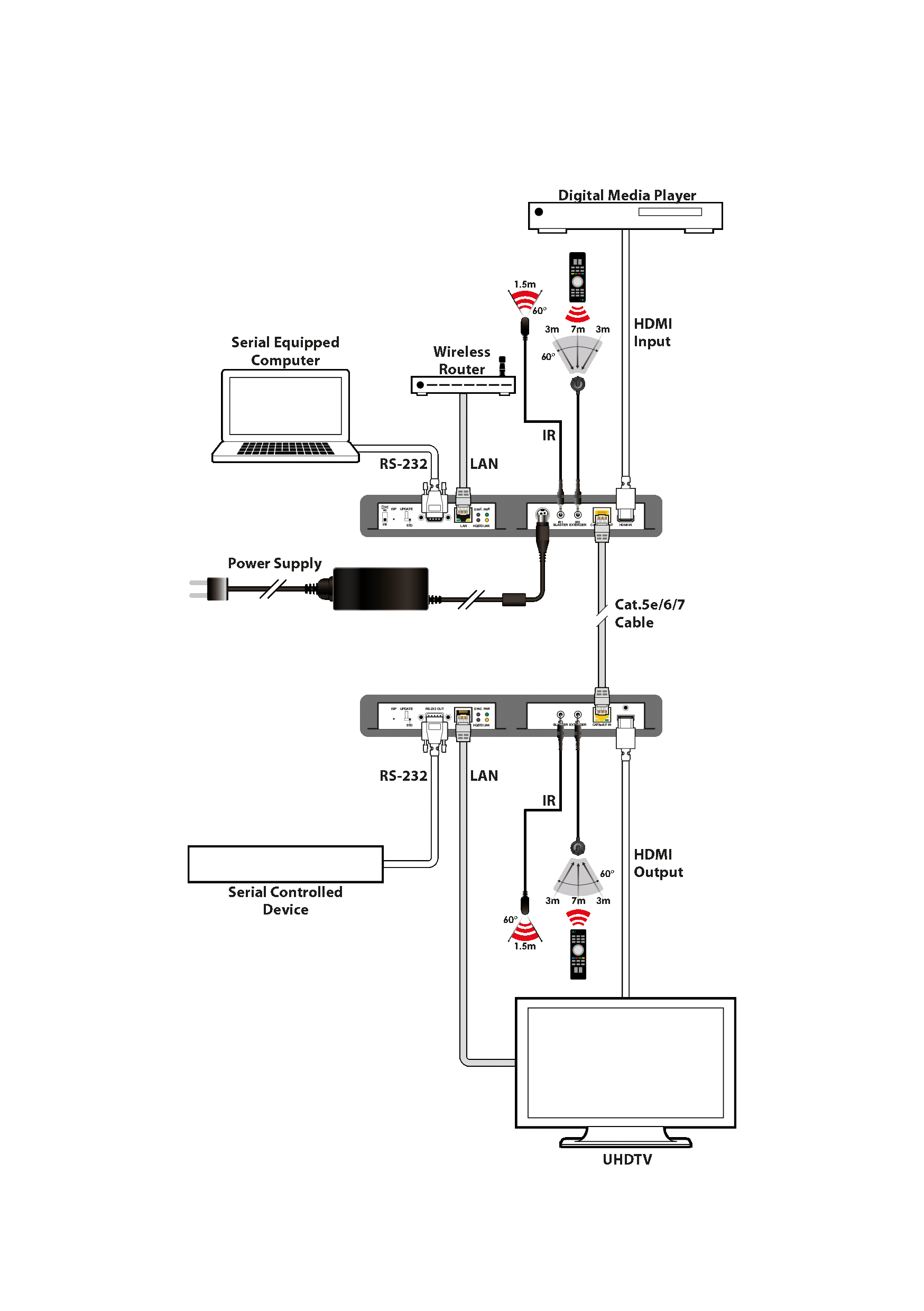 Der PUV-1830RX-AVLC-Receiver ermöglicht den Empfang von Videoauflösungen bis zu 4K UHD, einschließlich 10/12-Bit HDR und Dolby Vision, sowie HD-Audio, 2-Wege-IR, RS-232, PoH (Power over HDBaseT) und LAN-Signalen über eine Entfernung von bis zu 70 m (4K 60 4:4:4) bzw. 100 m (4K 60 4:2:0). Diese Lösung bietet fortschrittliches Signalmanagement und gewährleistet zuverlässige Ergebnisse auch in anspruchsvollsten Installationsumgebungen. Audio, Video, Steuerung und Stromversorgung werden gleichzeitig über ein einziges CAT6a/7-Kabel bis zu 100 m Entfernung empfangen.