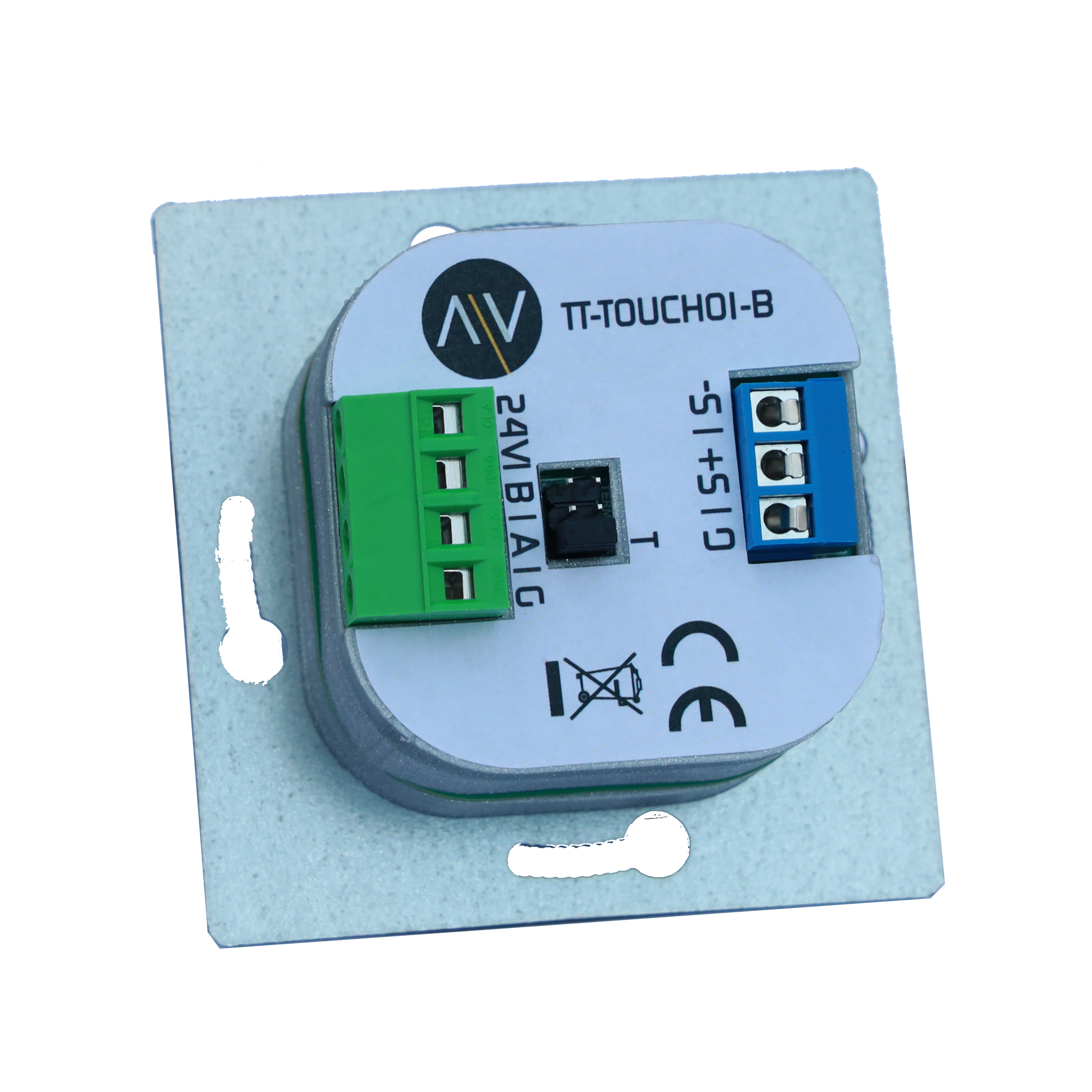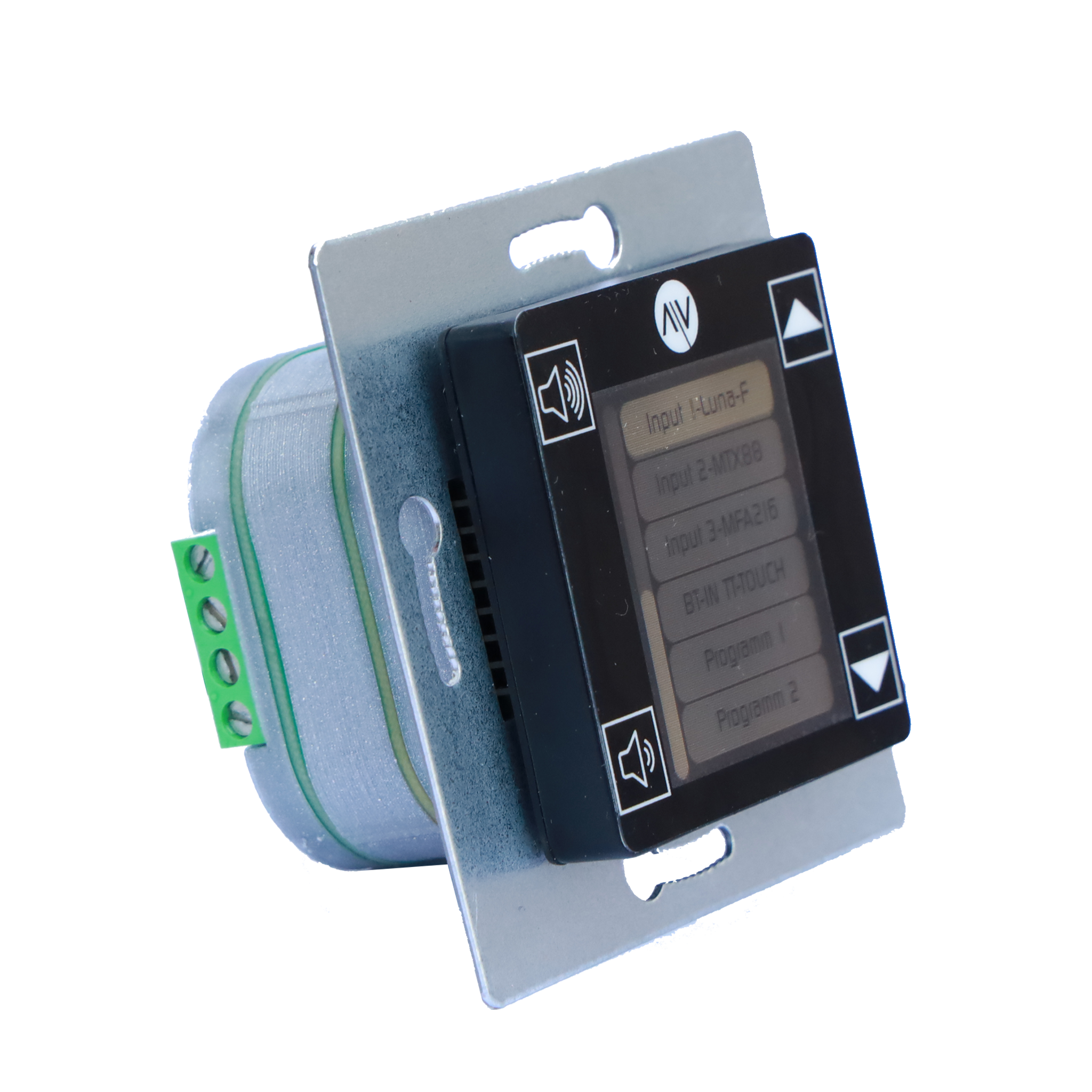 Universal Wandeinbaucontroller mit Bluetooth Receiver im 55er-Format für alle AUDAC Geräte mit RS485 Anschluss.